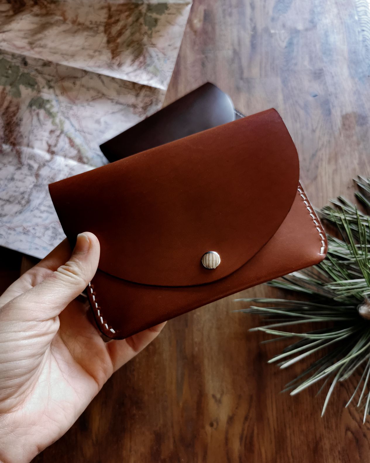 Le cuir en tannage végétal s’imprégnera de façon incroyable des mouvements, des rayures et de la patine acquise à vos cotés pour devenir un produit personnel avec beaucoup de caractère. Cette pièce deviendra uniquement la vôtre après un très court laps de temps. Les bords sont polis, teintés et ciré à la cire d’abeille.